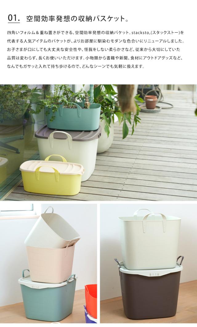 3点以上で送料無料 stacksto baquet スタックストーバケット Lサイズ 40L 【 バケット 収納ボックス 四角 おしゃれ かわいい バスケット ランドリー 洗濯物入れ 洗濯かご 洗濯 ごみ箱 おもちゃ箱 カゴ かご 片付け 整理 整頓 掃除 バケツ】sstfs