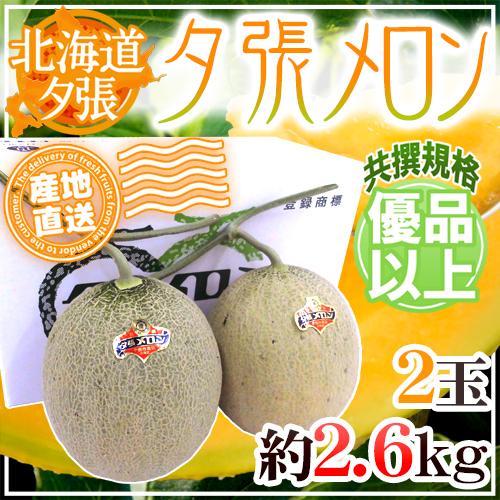 【産地直送】北海道 夕張メロン 2玉 約2.6kg 共撰・優品 化粧箱入り”優6-2玉”【予約 6月下旬以降】 送料無料