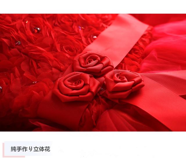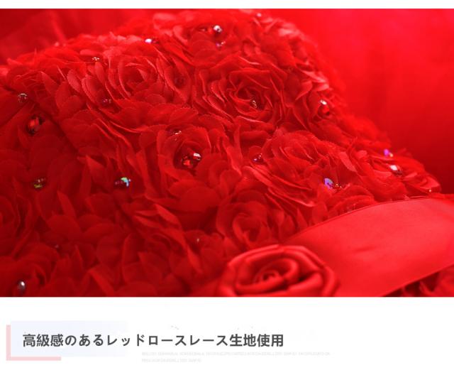 前上がり レッドロースレース ウェディングドレス パーティドレス ビスチェ トレーン XS~3XL 赤 結婚式 二次会 発表会 舞台 撮影 H043
