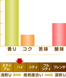 良質なコーヒー特有のフルーティーな香り、口当たりは軽く雑味のないまろやかな味わいで特に女性に好評のコーヒーです。