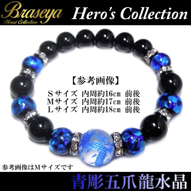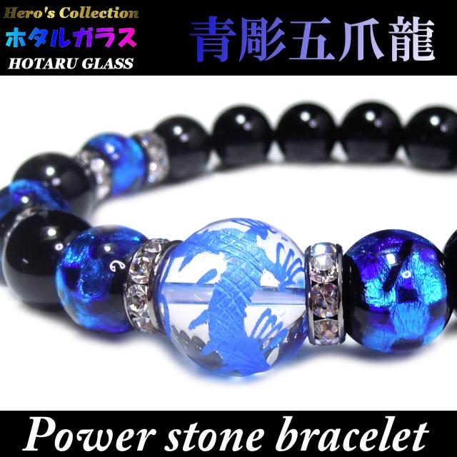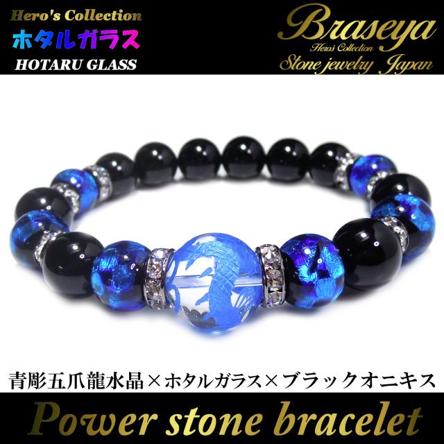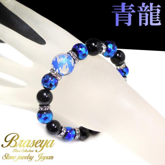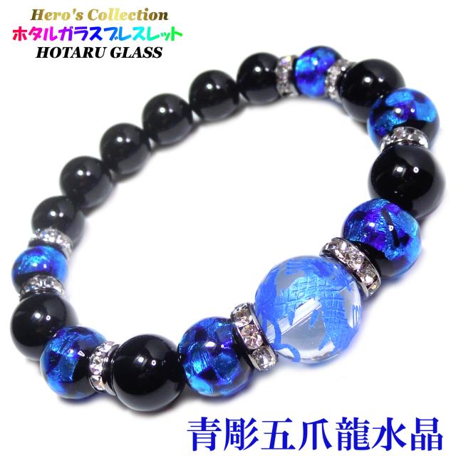 【送料無料】 青彫 五爪龍 水晶 16mm 蓄光ホタルガラス × ブラックオニキス パワー ストーン ブレスレット メンズ 天然石ブレスレット 誕生日 お祝い プレゼント とんぼ玉