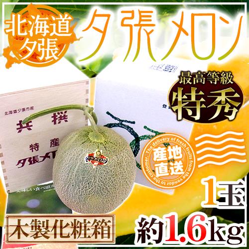 【産地直送】北海道 夕張メロン 1玉 約1.6kg 共撰・特秀品 専用木製化粧箱入り”特5-1玉(木箱)”【予約 6月下旬以降】 送料無料