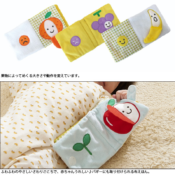 赤ちゃんの大好きな果物と表情を掛け合わせた布絵本になっています。