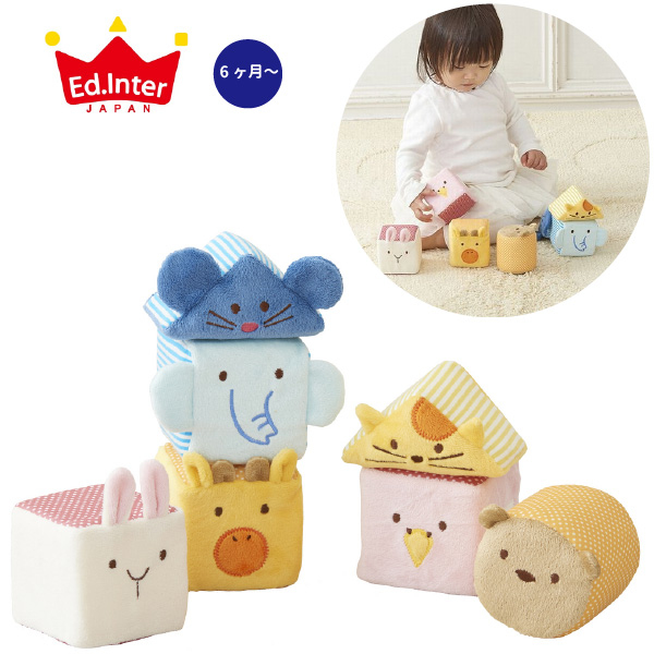Ed.inter エドインター ふわふわアニマルブロック ~ 出産祝い、ハーフバースデイにぴったり 温かな感触とやさしい音や柄の布おもちゃ
