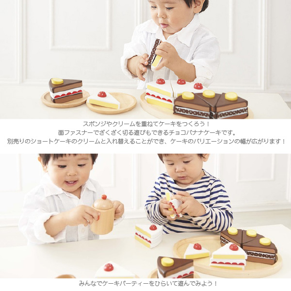 Ed.inter(エドインター)の子どもの『やってみたい!』を叶えてくれるエドインターの木のままごとあそびシリーズ!木製おままごと『チョコバナナケーキ』です。