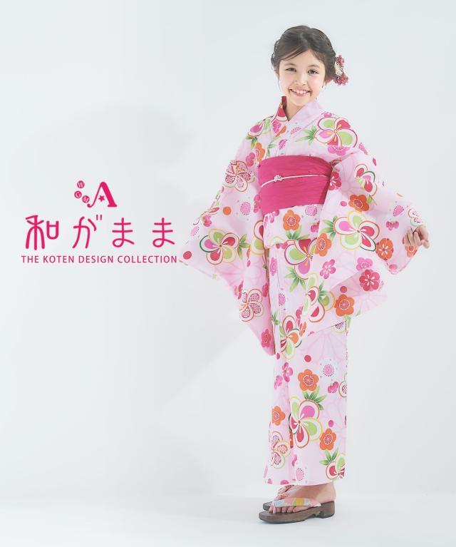 和がまま 子供浴衣3点セット 【浴衣 兵児帯 下駄】 選べる12柄 6サイズ 古典 浴衣 下駄 夏祭り キッズ 子供 女の子 椿 矢羽 毬 まり ねじり梅 古典柄 セット 女児 【100cm/110cm/120cm/130cm/140cm/150cm】【黒 ピンク 白 青】ゆかた 女児 痛くない鼻緒