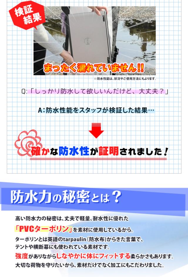- 内容に偽りなし。 確かに雨に濡れても中身は濡れてないです。 非常に重宝しています。
