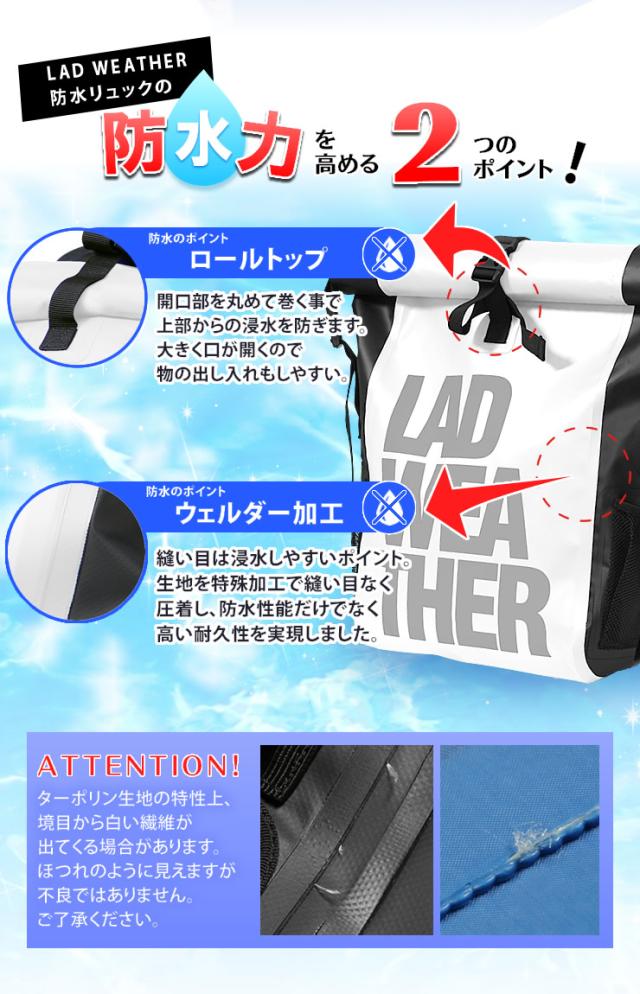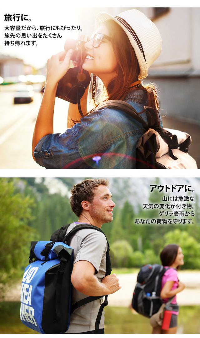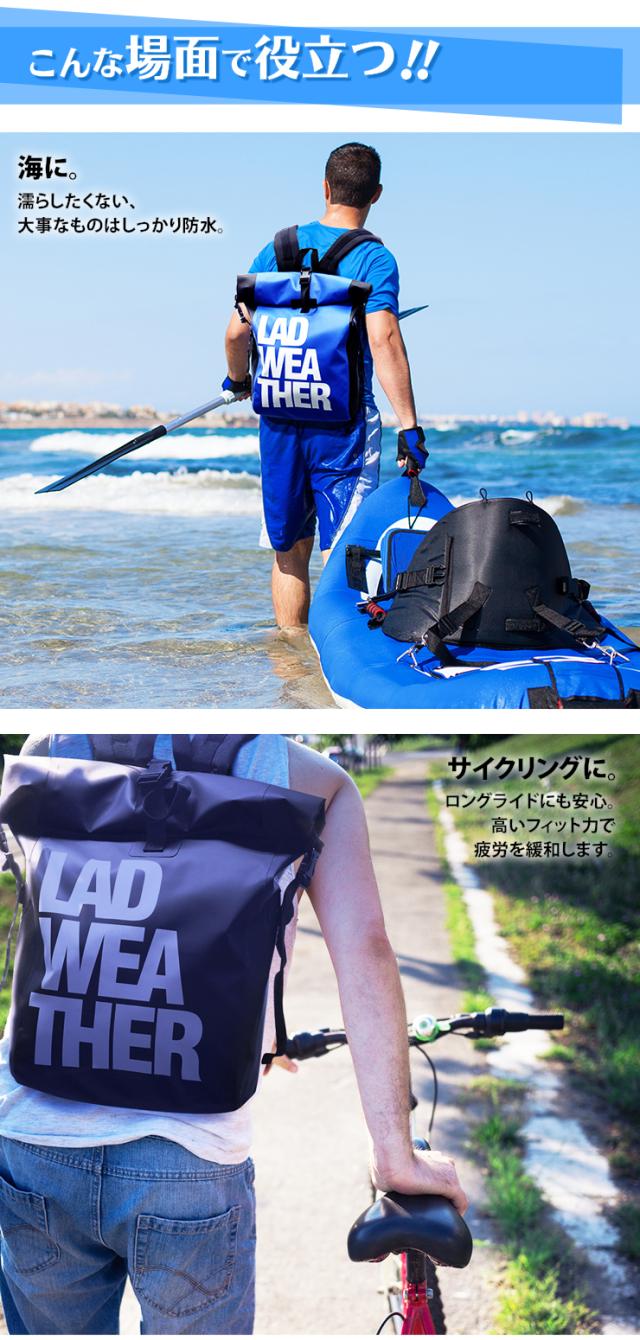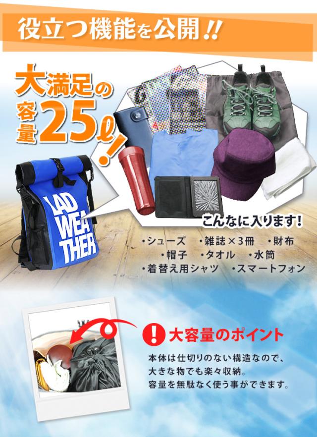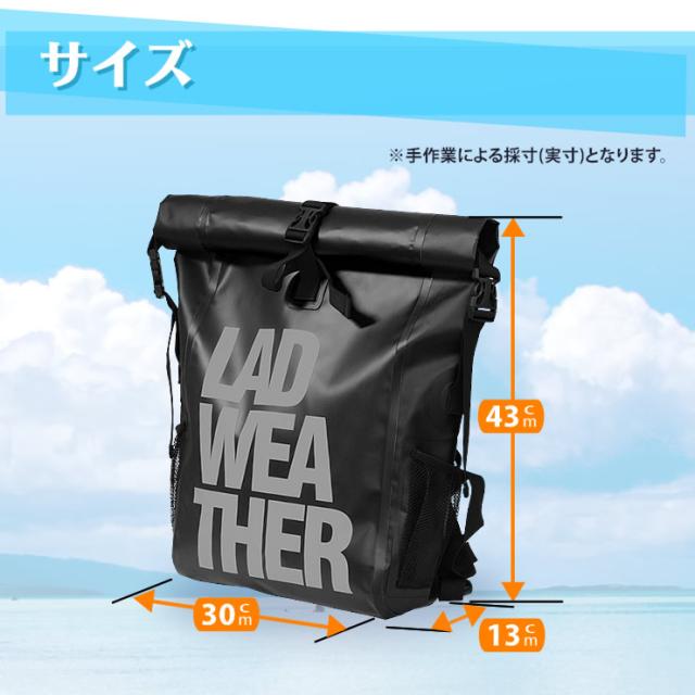 激しくぶっかけても絶対に濡れない 超防水リュック! 防水バッグ リュックサック メンズ 容量25L 自転車やバイクでの通勤・通学に! キャンプや海水浴に!ラドウェザー 送料無料