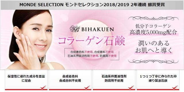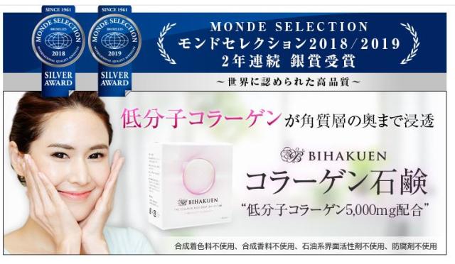 コラーゲン石鹸 100g 2個セット BIHAKUEN ビハクエン「低分子コラーゲン」5,000mg配合 【FTL国内出荷】