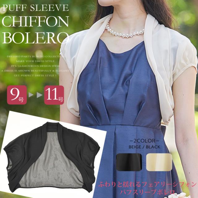 ボレロ 結婚式 ボレロ シフォン 半袖 結婚式ボレロ 大きいサイズ メール便送料無料 パフスリーブ エアリーシフォンボレロ 半袖 9号 11号