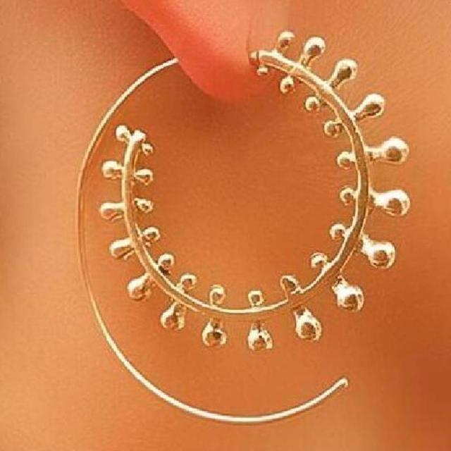 ボヘミアンスプラッシュスパイラルリングピアス 1ペア販売 ゴールド 金色 シルバー 銀色 エスニック インディアンジュエリー アジアン メンズ レディース おもしろ オモシロ 面白い プレゼント ギフト 20G 20ゲージ メタル 真鍮 ラウンド ツイスト 民族 夏ピアス 水滴