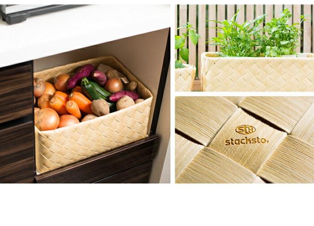 天然素材の風合いをそのままに、「新素材テンネスク」を使用した万能バスケット。
