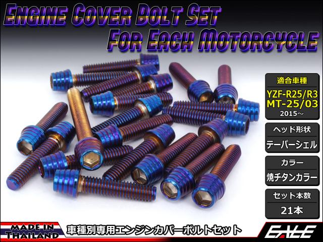 YZF-R25 YZF-R3 MT-25 MT-03 エンジンカバー ボルト21本set キャップボルト テーパーシェルヘッド 焼チタンカラー TB7028