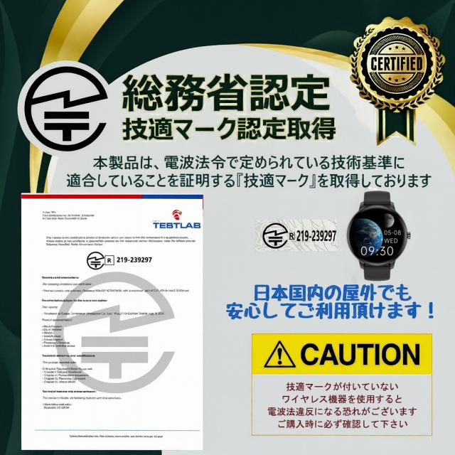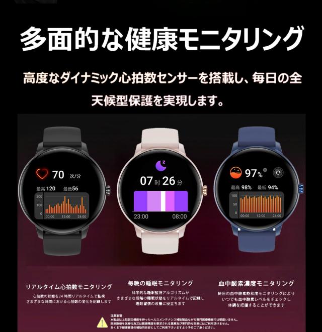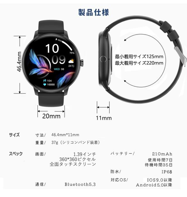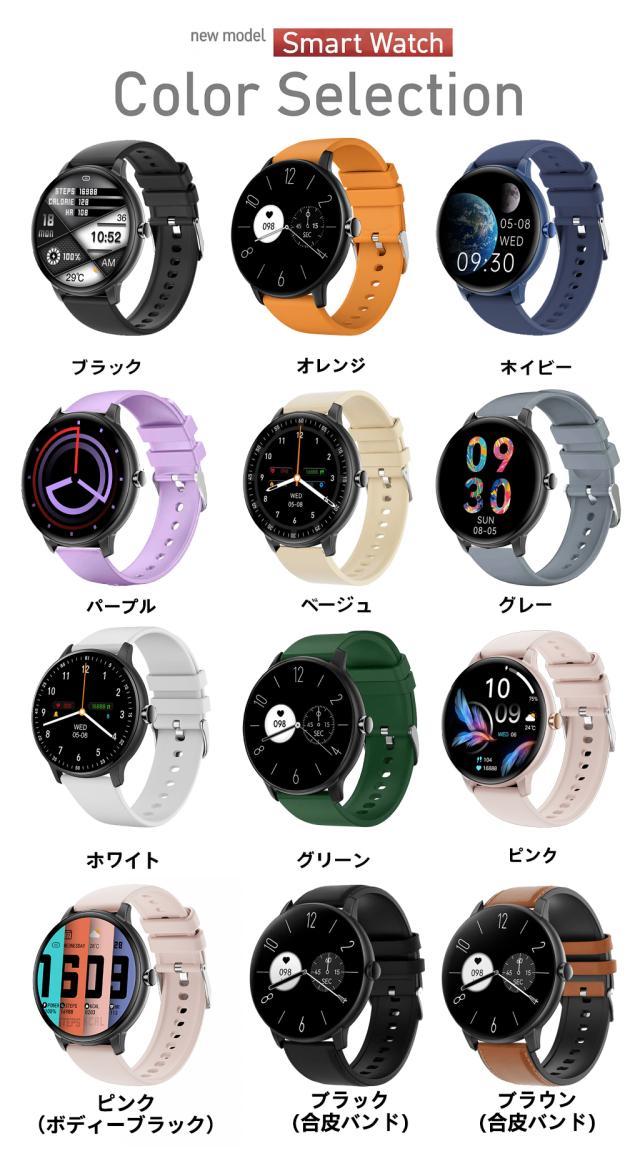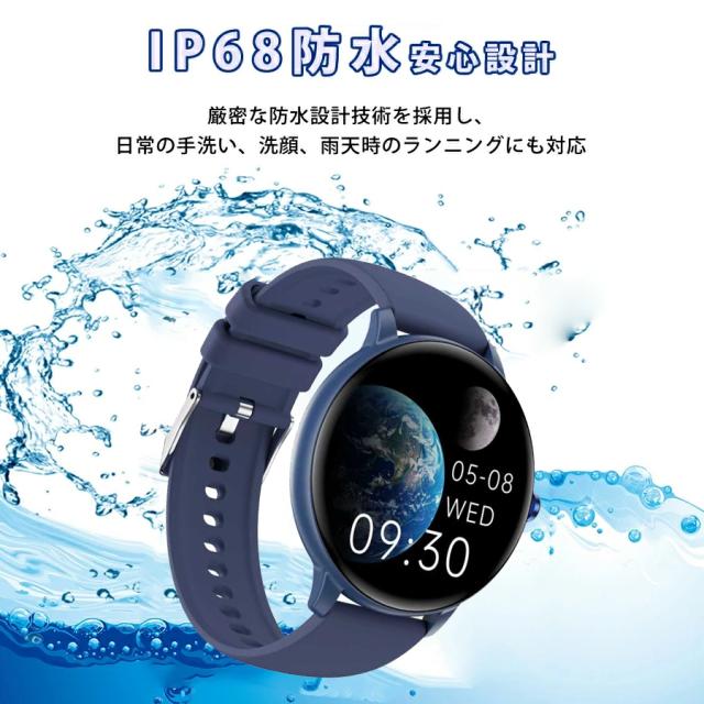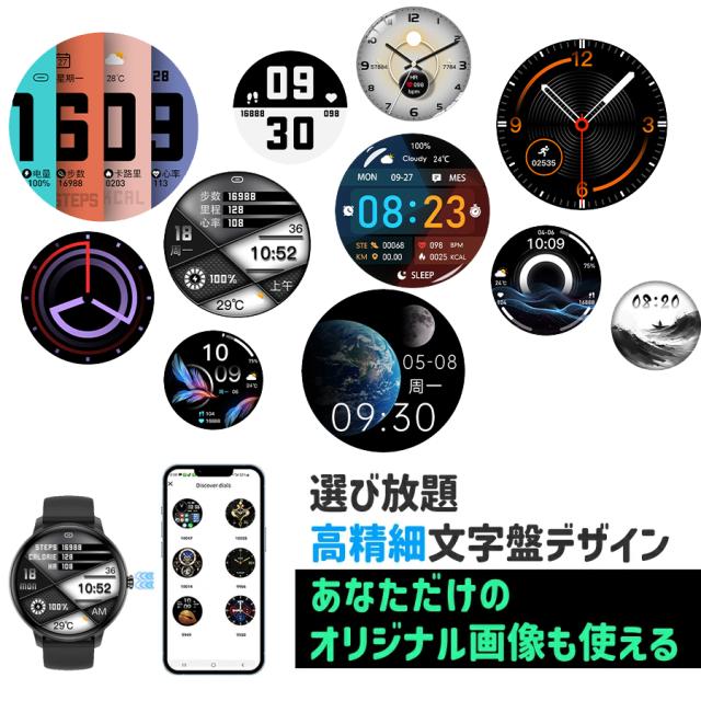 スマートウォッチ 通話機能 日本製センサー 心拍 歩数計 丸型 IP68防水 日本語 着信通知 睡眠計 睡眠検測 アラーム 時計 iphone android 対応