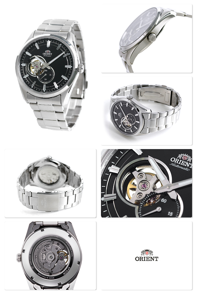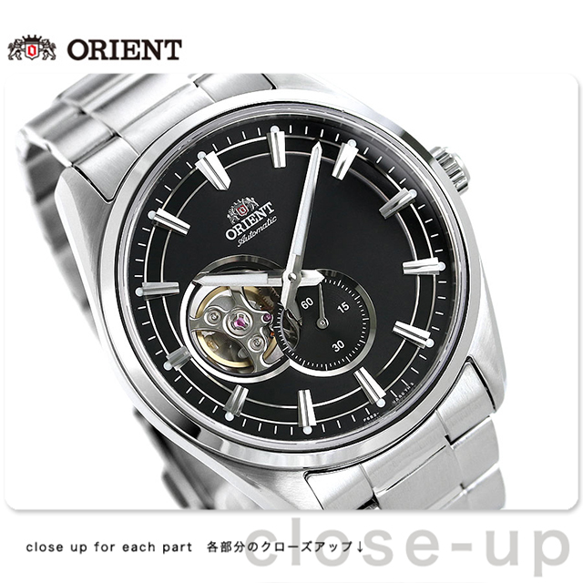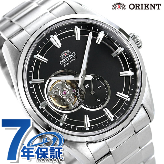 正規品 7年保証キャンペーン 送料無料 オリエント コンテンポラリー セミスケルトン オープンハート 自動巻き メンズ 腕時計 RN-AR0001B ORIENT CONTEMPORARY SEMI SKELETON アナログ ブラック ◆オリエントより、46系F6ムーブメントに小秒を搭載したセミスケルトンのモデルがコンテンポラリーコレクションに登場。エッジの効いたケースに、9時位置のセミスケルトンと6時のスモールセコンドが特徴の立体的なダイヤルが魅力。カジュアルからスーツスタイルまでシーンを選ばず腕元を飾ります。また、裏蓋もスケルトン仕様になっており、ムーブメントを眺められ、お楽しみいただけます。 発売日:18年4月発売 機械式腕時計