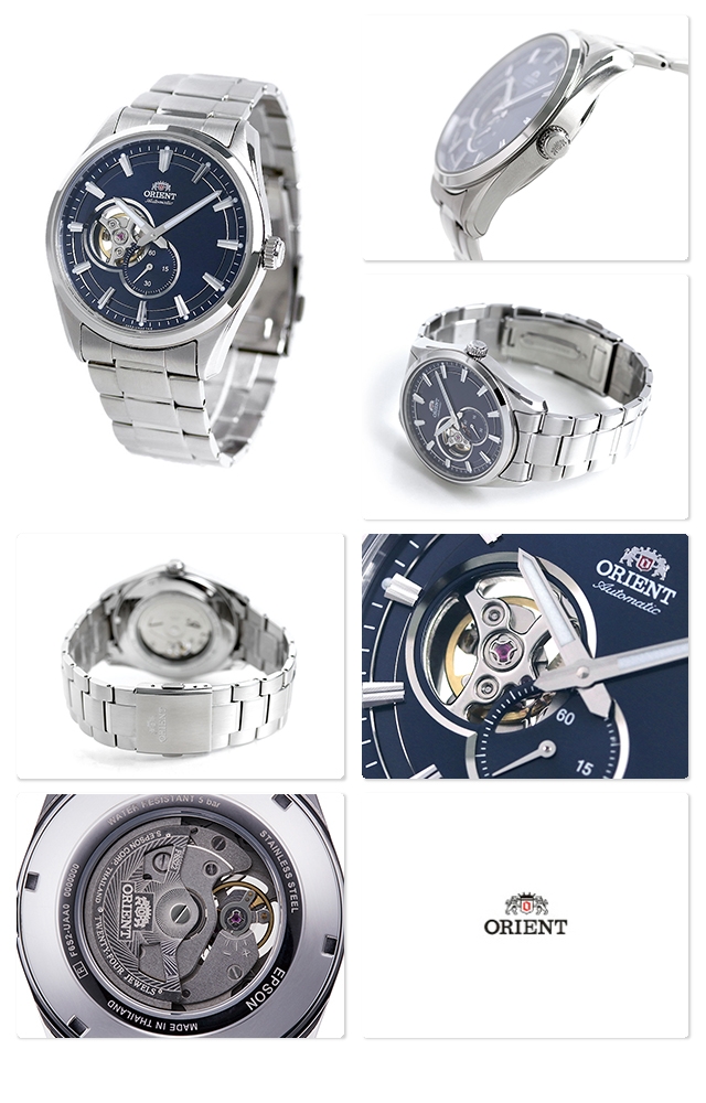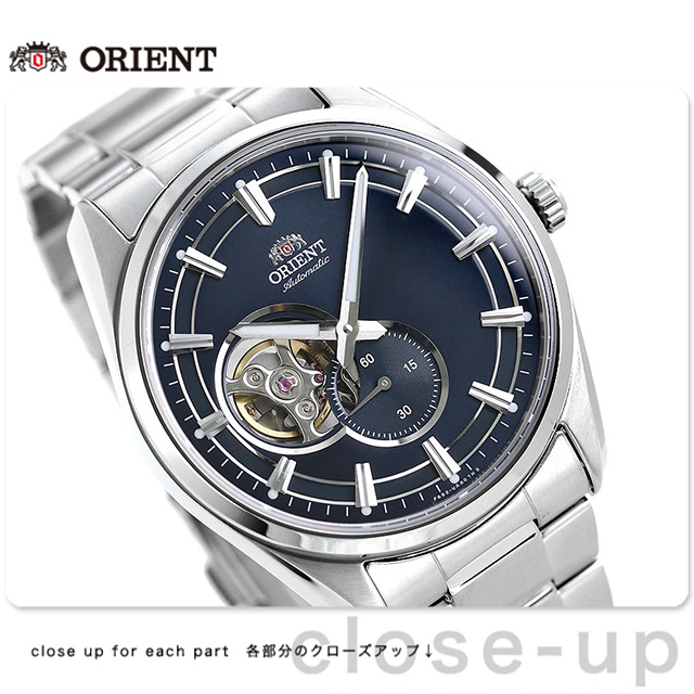 12月下旬入荷予定予約受付中 正規品 7年保証キャンペーン 送料無料 オリエント コンテンポラリー セミスケルトン オープンハート 自動巻き メンズ 腕時計 RN-AR0002L ORIENT CONTEMPORARY SEMI SKELETON アナログ ネイビー ◆オリエントより、46系F6ムーブメントに小秒を搭載したセミスケルトンのモデルがコンテンポラリーコレクションに登場。エッジの効いたケースに、9時位置のセミスケルトンと6時のスモールセコンドが特徴の立体的なダイヤルが魅力。カジュアルからスーツスタイルまでシーンを選ばず腕元を飾ります。また、裏蓋もスケルトン仕様になっており、ムーブメントを眺められ、お楽しみいただけます。 発売日:18年4月発売 機械式腕時計