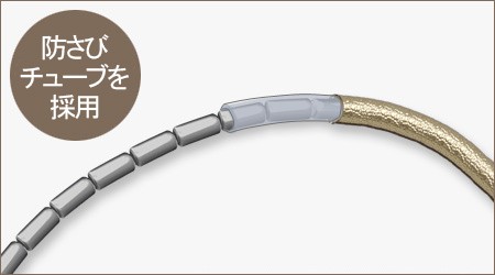 一般的に磁気ネックレスの磁石は、長期間使用すると水分や汗などの成分でさびてしまいます。《ウルトラネオ》は、ネオジム磁石を防さびチューブで保護しており、安心してお楽しみいただける「さびに強い製品」です。