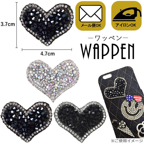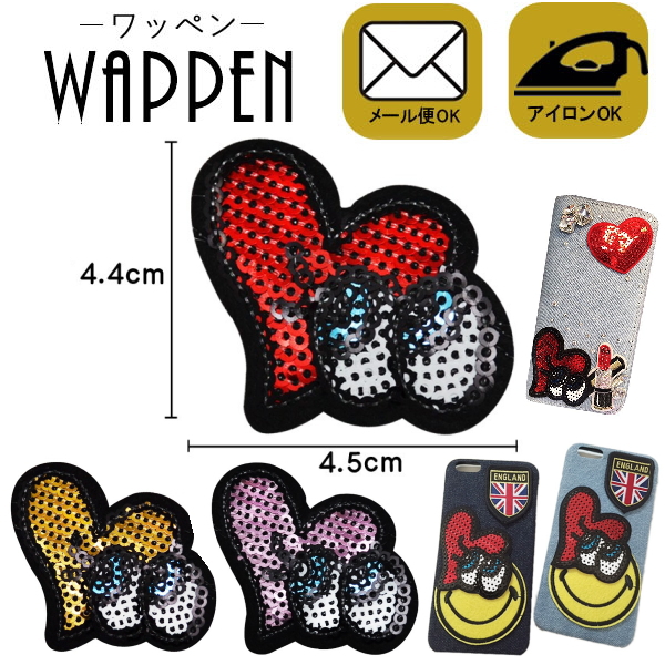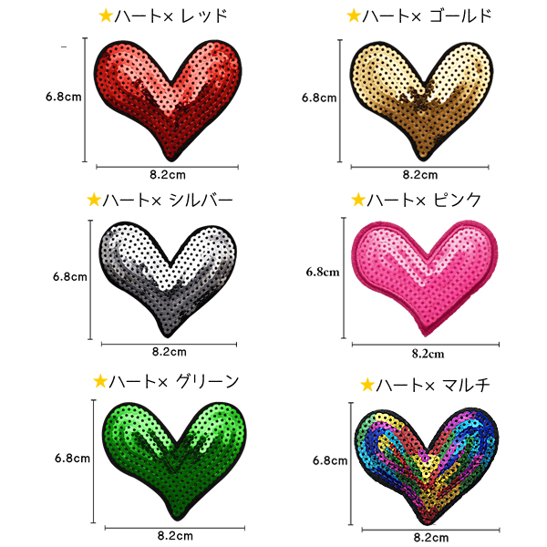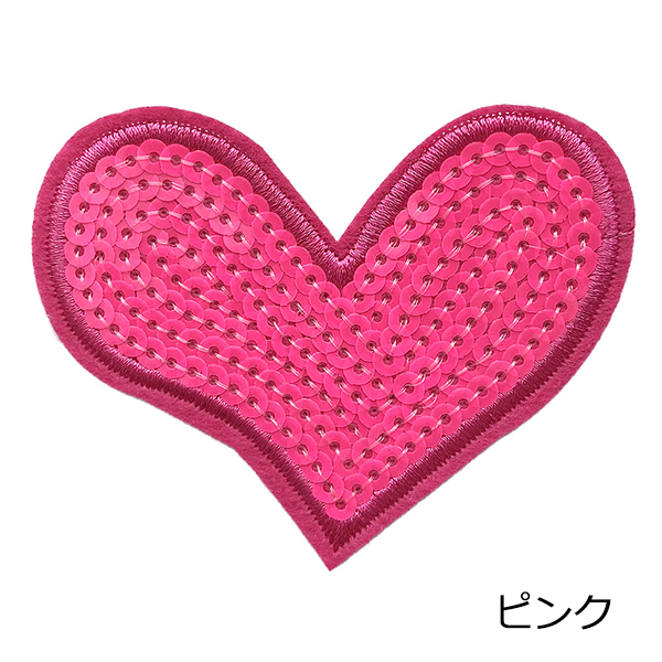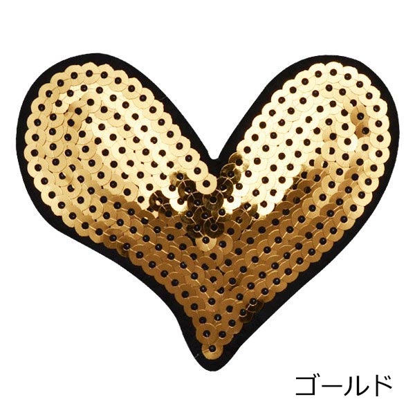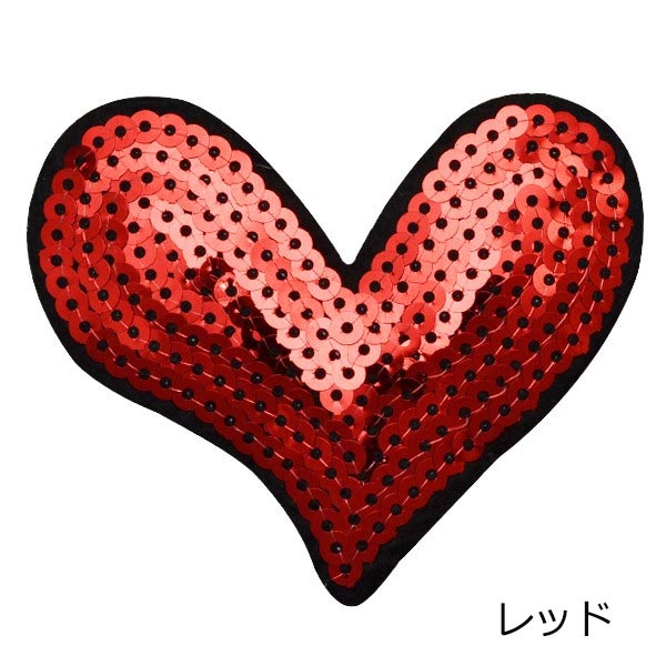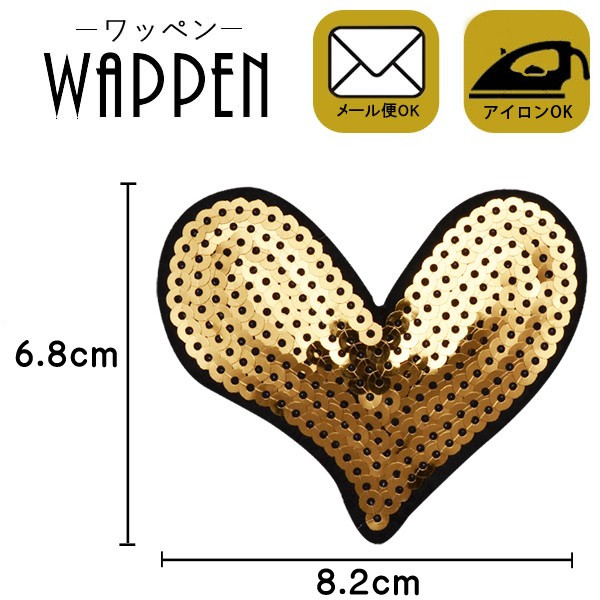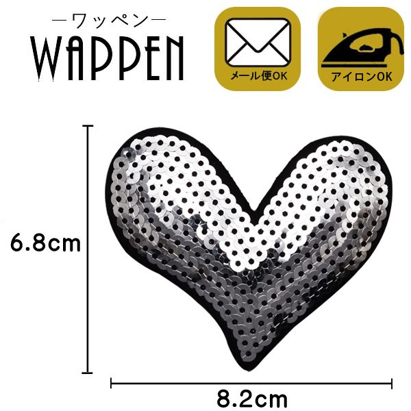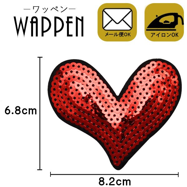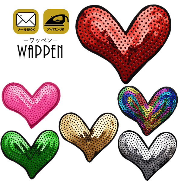 ハート ワッペン スパンコール アイロン接着 縦6.8cm×横8.2cm アップリケ 手芸 ワッペンデコ カスタム デコ WAPPEN 母の日 プレゼント ギフト