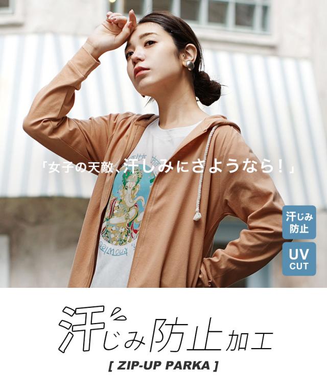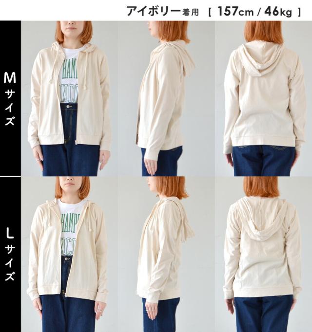 パーカー 汗染み防止 UVカット 綿100% M/L/LL/3L レディース 羽織 羽織もの UVパーカー トップス 長袖 フード 薄手 紫外線 冷房対策 コットン 大きいサイズ ゆったり 【メール便可22】◆zootie(ズーティー):汗しみない パーカー