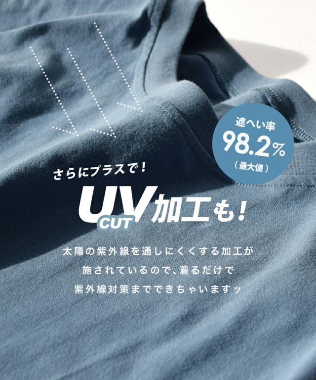 ▼本製品のUVケア加工は永久的に持続する加工ではありません。着用・洗濯を重ねる度に消失していきます。効果の目安は1シーズンとなっております。