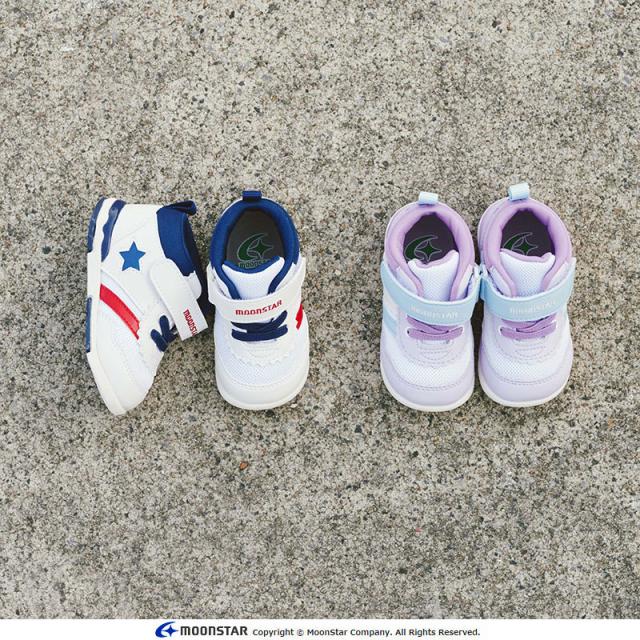 子どもの足の成長をサポートする「4つの機能(つま先ゆったり/カウンターボックス/フレックスジョイント/洗えるインソール)」に加え、抗菌防臭効果のある「カテキン」など、健やかな足の発育を促す機能性を兼ね備えた「ムーンスター」ブランド商品です。ハイスペック&ハイクオリティーな靴で子どもに明るく語りかける(Hi!!)ような商品です。(★マークはムーンスターの登録商標です。)