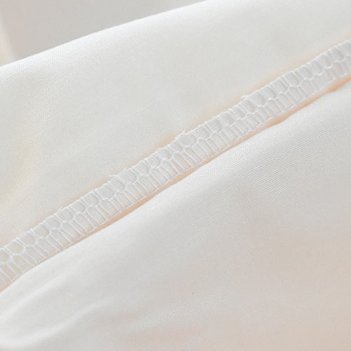 裏面の縫製 裏面はロックミシンでチェーンステッチと直線縫いをします。さらに裏面から本縫いをし、二度縫い(ダブルステッチ)で、ダニの侵入を防ぎます。