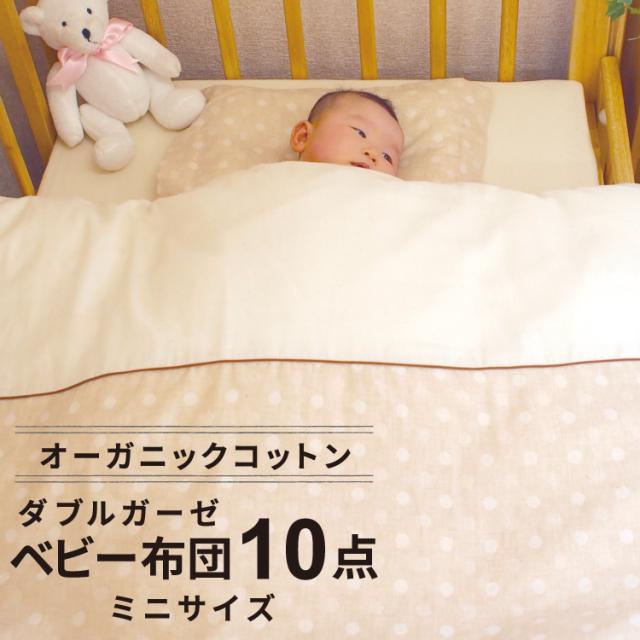 日本製 ベビー布団セット ミニ10点 オーガニックコットン ダブルガーゼ 綿100% 全て洗える 60×90cm ミニサイズ ミニ布団セット ミニベビーベッド 出産準備 出産祝い ギフト 選べる20デザイン un doudou MF10