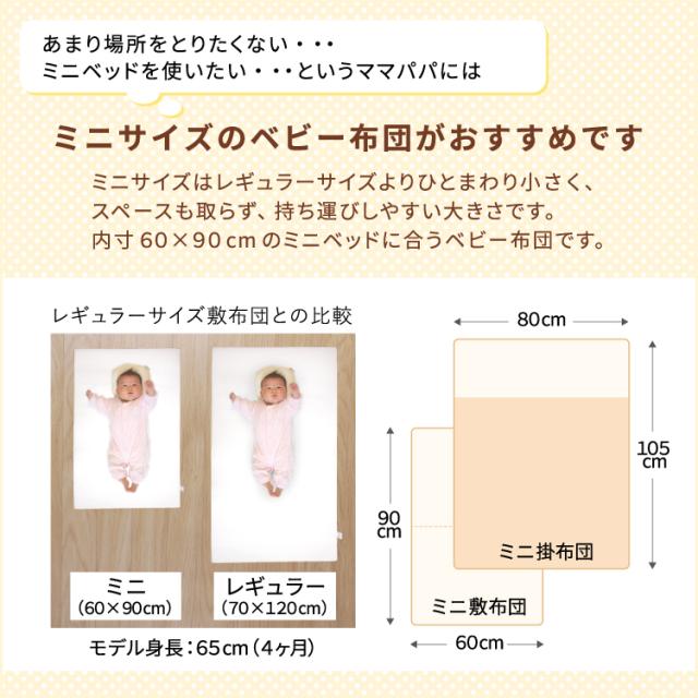 こちらは「ミニサイズ」です。 ベビーベッドをご使用される場合は、内寸法60×90cmのミニサイズ用です。