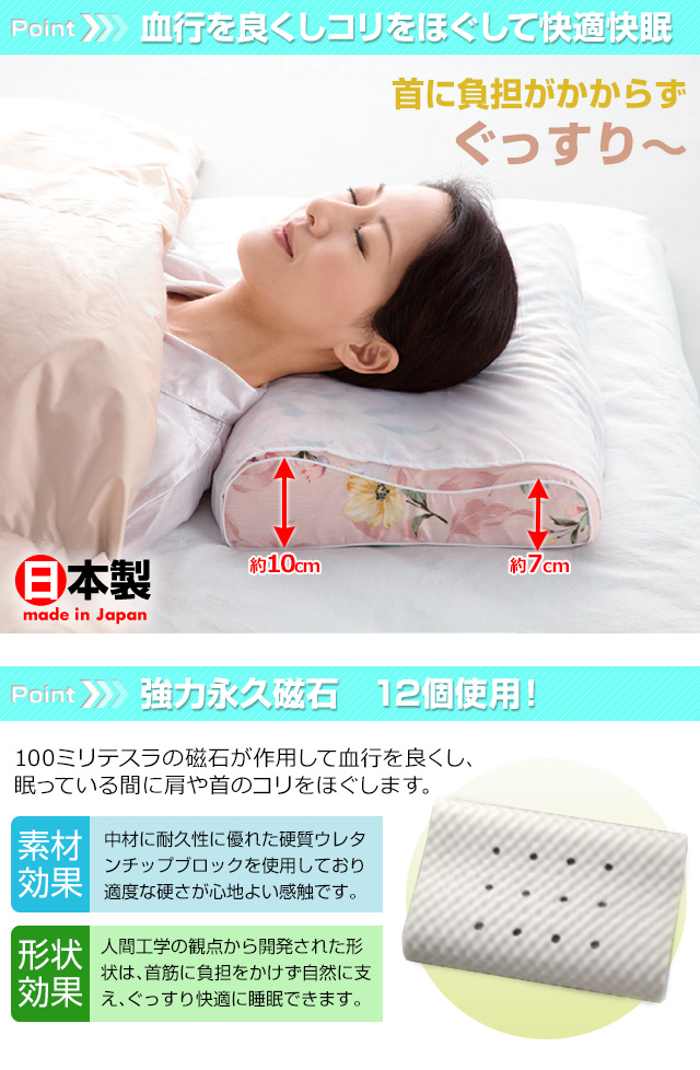 枕 まくら 磁気まくら 強力 永久磁石 12個使用 磁気 カバー付 磁気枕 肩 首 こり ピロー 日本製 送料無料