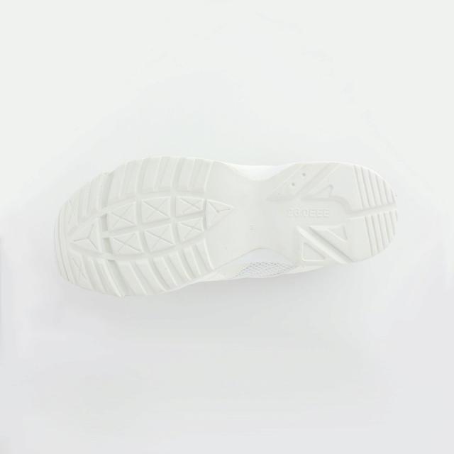 男性用シューズ。院内使用に配慮したノンマーキングソール。軽量設計。上甲にストレッチ性をもたせ、サイド部分は蒸れにくいよう通気性の良いメッシュ素材を使用しています。中敷は「Ag+抗菌防臭」を搭載 。銀イオンの抗菌作用でにおいのもととなる菌の増殖を抑制し、防臭効果を発揮します。踵はバンドで脱ぎ履きが簡単です。