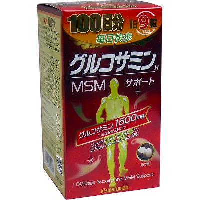 グルコサミン1500mg(1日目安量9粒中)配合! 100日分、毎日快歩!(1日9粒でOK!) 高純度グルコサミンを9粒中に1500mg配合し、さらに米国などで注目を浴びている、MSM(メチルスルフォニルメタン)を配合! ・鮫軟骨抽出物(コンドロイチン含有)、フィッシュコラーゲン、ヒアルロン酸、カルシウムなどを配合した、栄養補助食品です。 ・いつまでも若々しくいたい方、活動的な毎日を送りたい方など、毎日の健康維持にお役立てください。