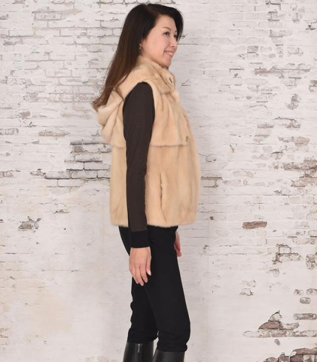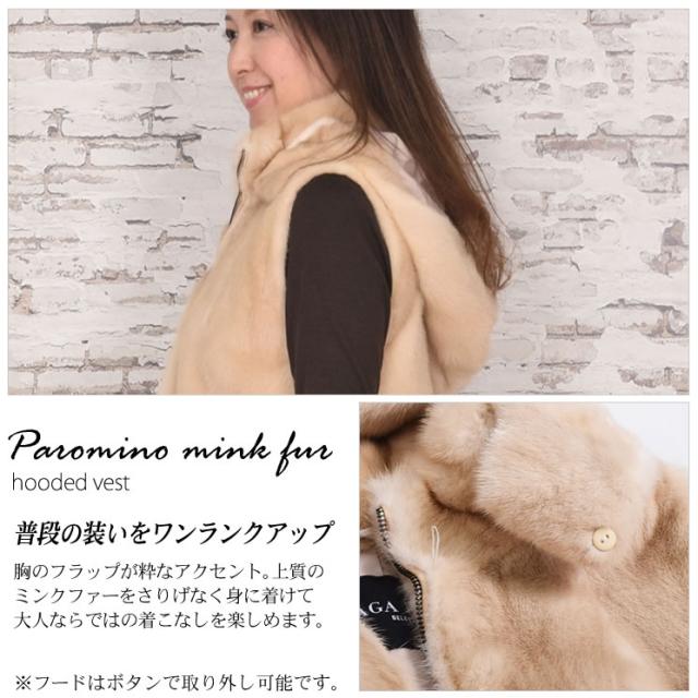 SAGA パロミノ ミンクベスト フード付 (MB2381)