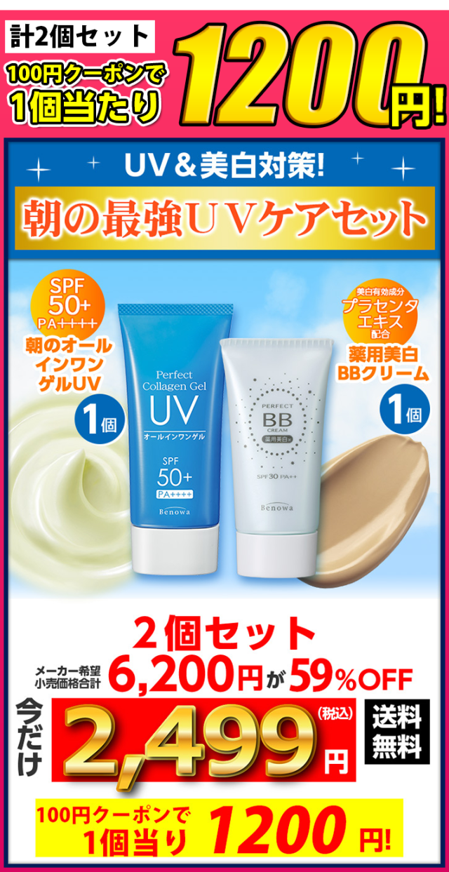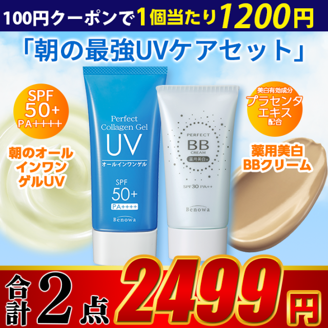 BBクリーム UVカット ゲル 美白 日焼け止め 朝の最強UVケアセット WA50671 定形外 CV,BW set コスメ オールインワン SALE UVケア 美肌 保湿 コラーゲン シミ しわ たるみ ai1 fpc set