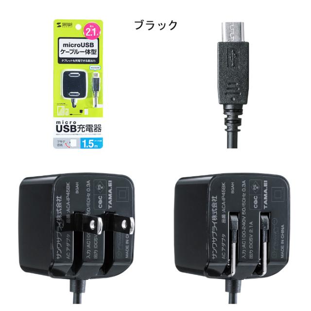 ■商品名:microUSBケーブル一体型AC充電器(2.1A)