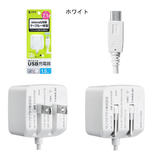 代引不可 microUSBケーブル一体型AC充電器(2.1A) サンワサプライ ACA-IP45