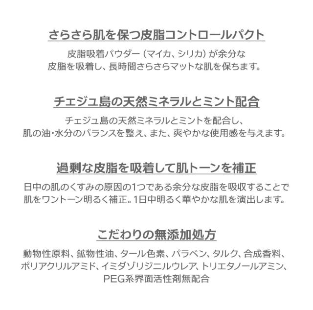 | 商品説明 | テカリなくサラサラした赤ちゃんの肌を演出してくれる皮脂吸着パクト |
