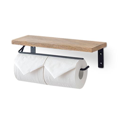 ポッシュリビング トイレットペーパーホルダー ダブル ブラック 41283 | ペーパーホルダー 北欧 木製 アイアン ブラウン棚 棚付き 収納 おしゃれ ナチュラル DIY