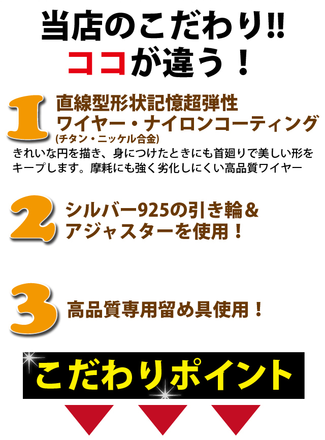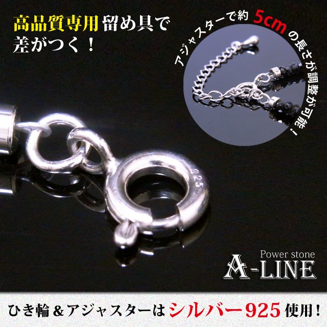厳選ブラックスピネル約3mm、シルバー925ひき輪&アジャスター、高品質専用留め具(真鍮製ロジウムメッキ処理)、形状記憶超弾性ワイヤー