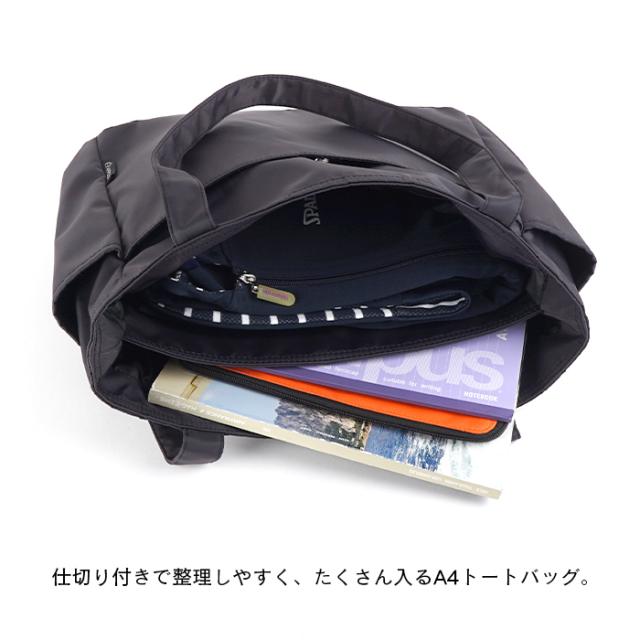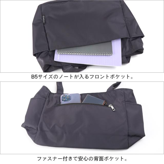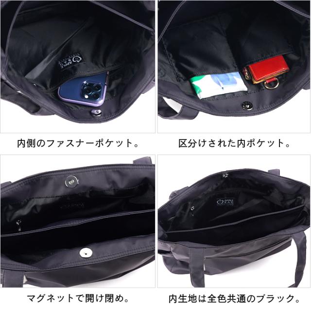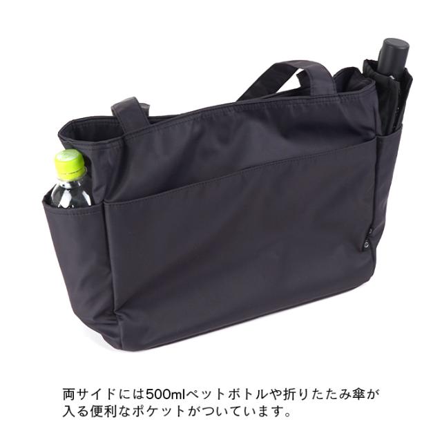 - 出勤用バッグとして購入。ポット2本はサイドへ入りお弁当箱、化粧ポーチ等たくさんはいります。 なんと言っても軽い。この一言に尽きます。見た目に高級感はないけれどお値段的に良い方では?