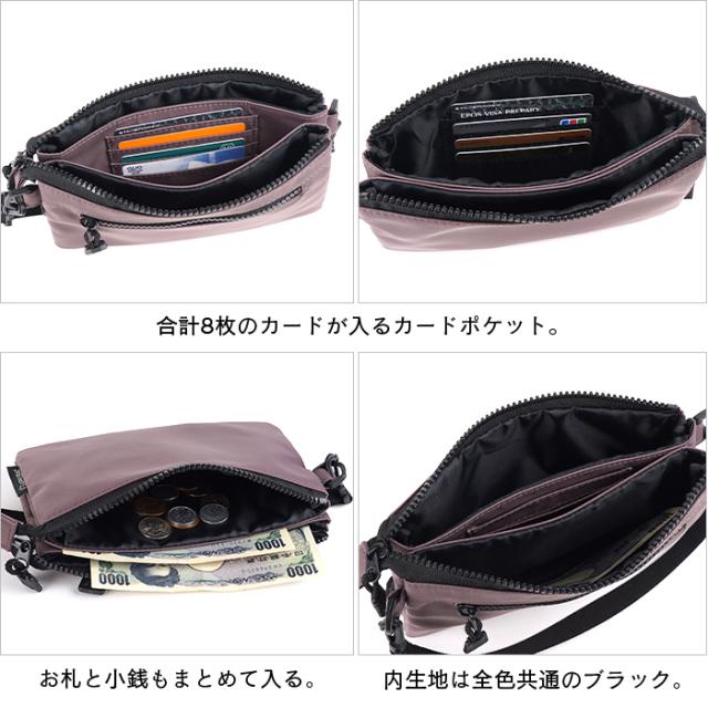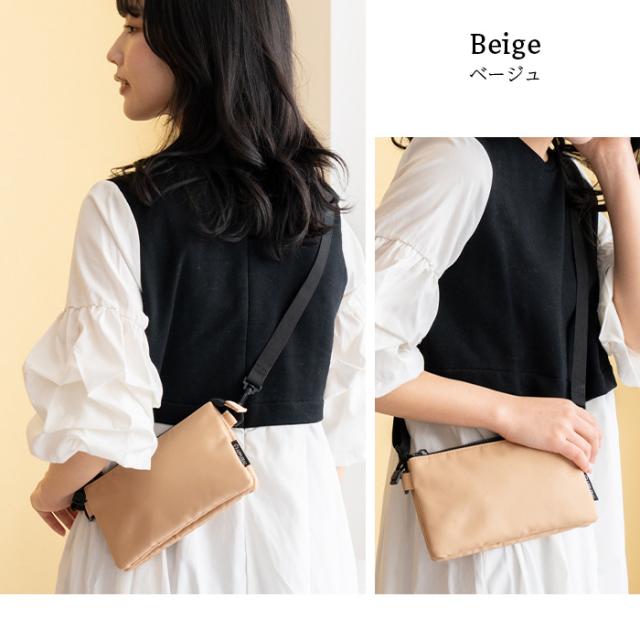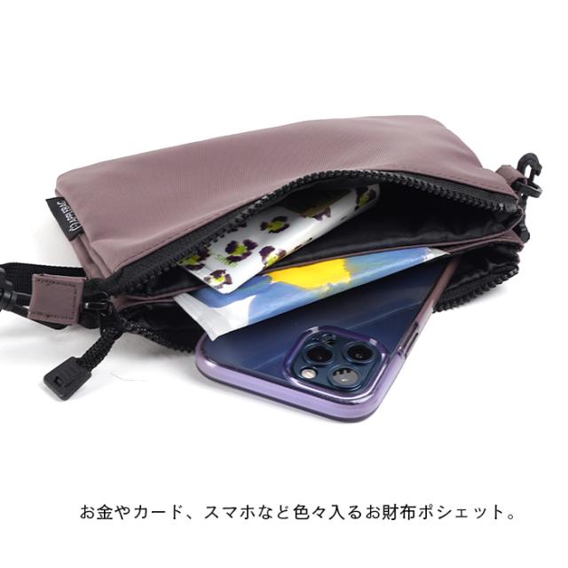 お金やカードはもちろん、スマホなど貴重品を肌身離さず持ち歩けるお財布ポシェット。ミニバッグとしても活用できるショルダー付きです。
