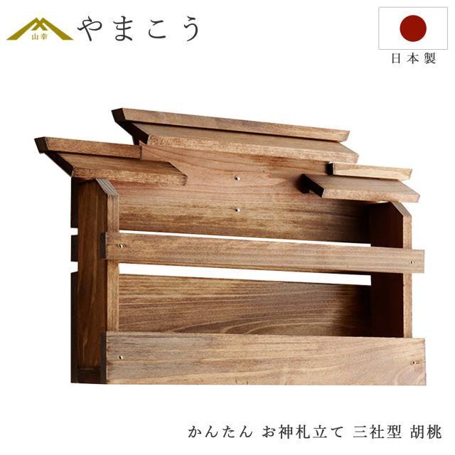 家具調 手塗り 限定作成 ■ 三社 ■ 壁掛け かんたん 神棚 ■ お札立て 御札入れ ■ 石膏ボード壁に 家具調モダン神棚
