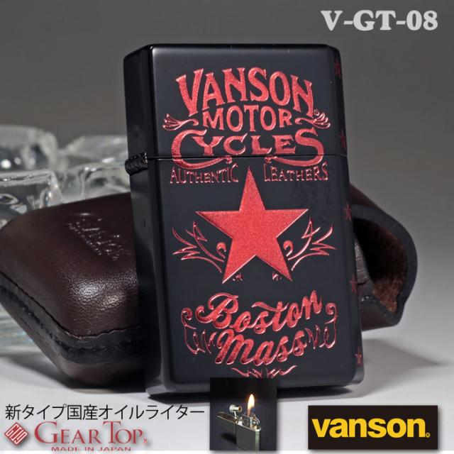 VANSONxGEAR TOP ギアトップ コラボ 国産オイルライター 2面加工 スターデザイン ブラック 送料無料