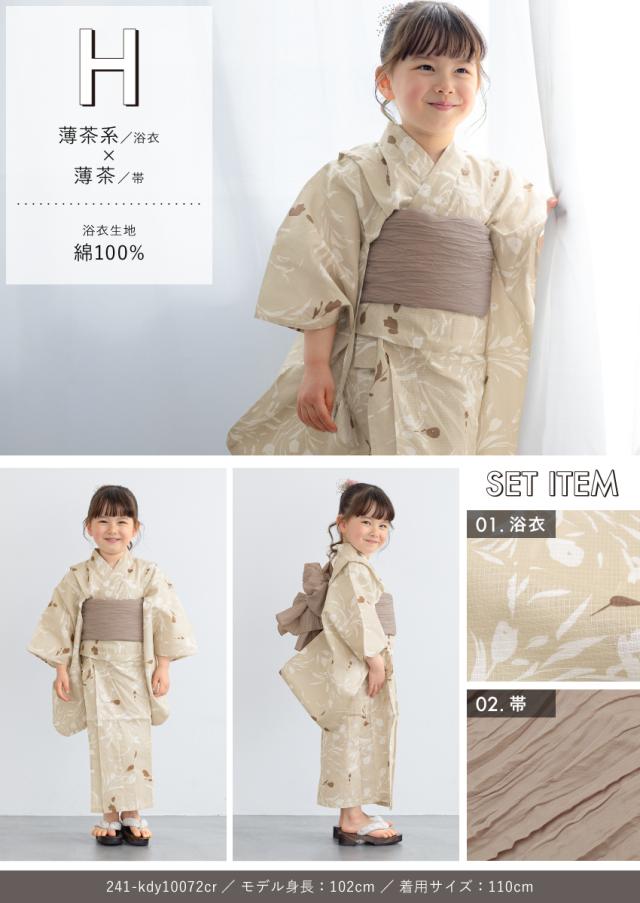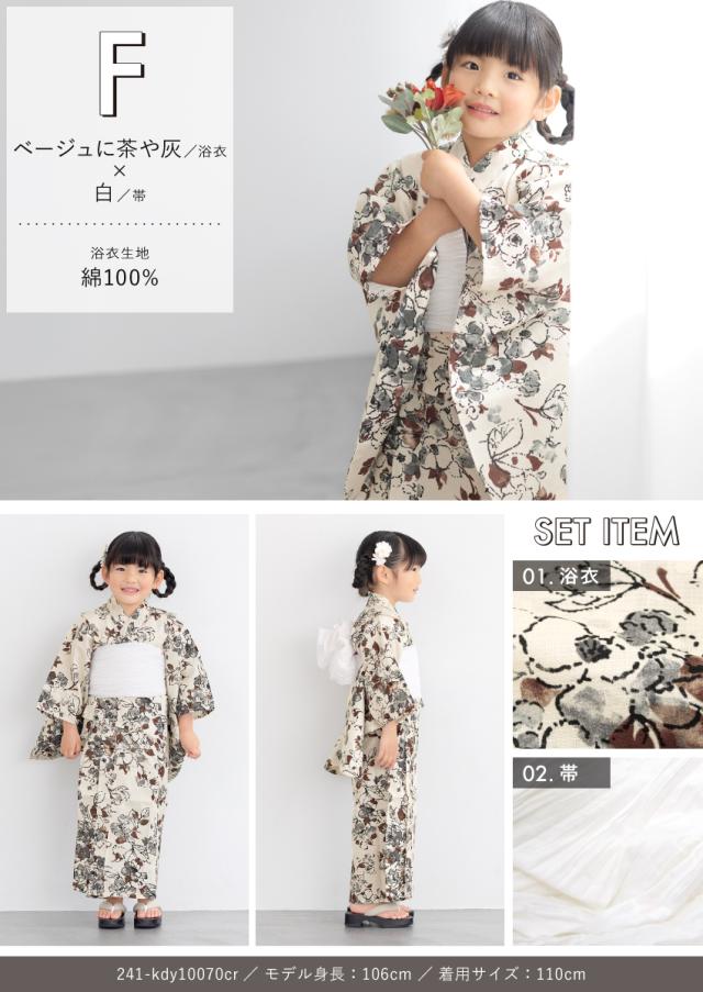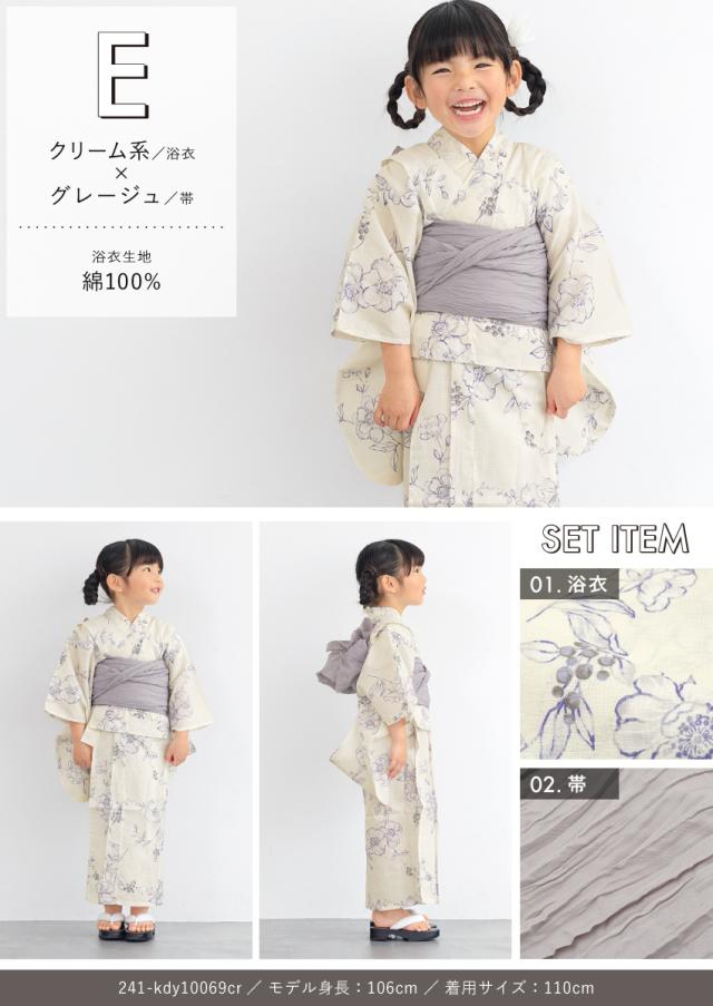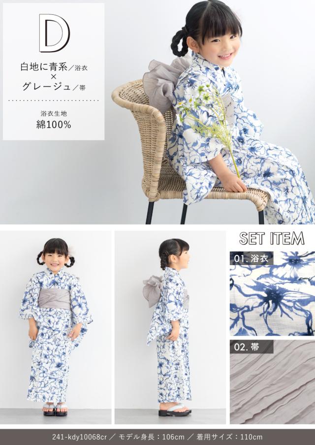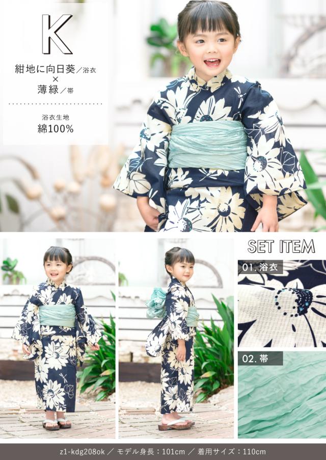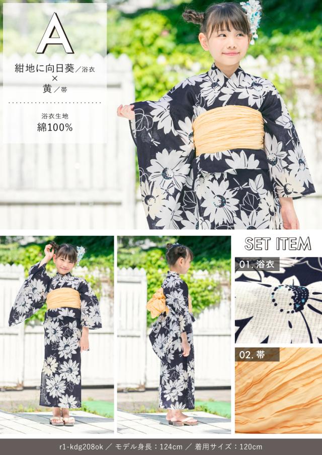 浴衣セット キッズ プチプラ 子供浴衣 2点セット 女の子 浴衣 兵児帯 帯 セット 花柄 ひまわり ストライプ アースカラー 青 白 紺 おしゃれ 着付け 簡単 子供 小学生 ジュニア 夏祭り 花火大会 翌日配送 創美苑 送料無料