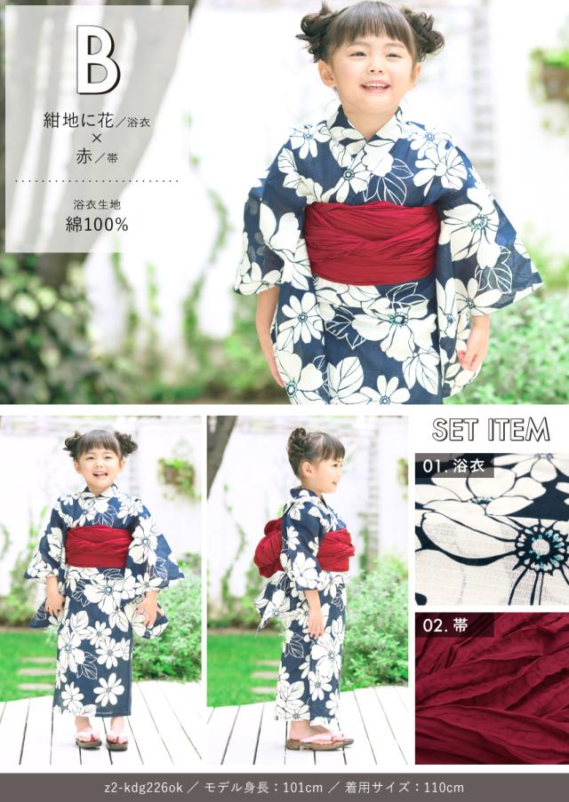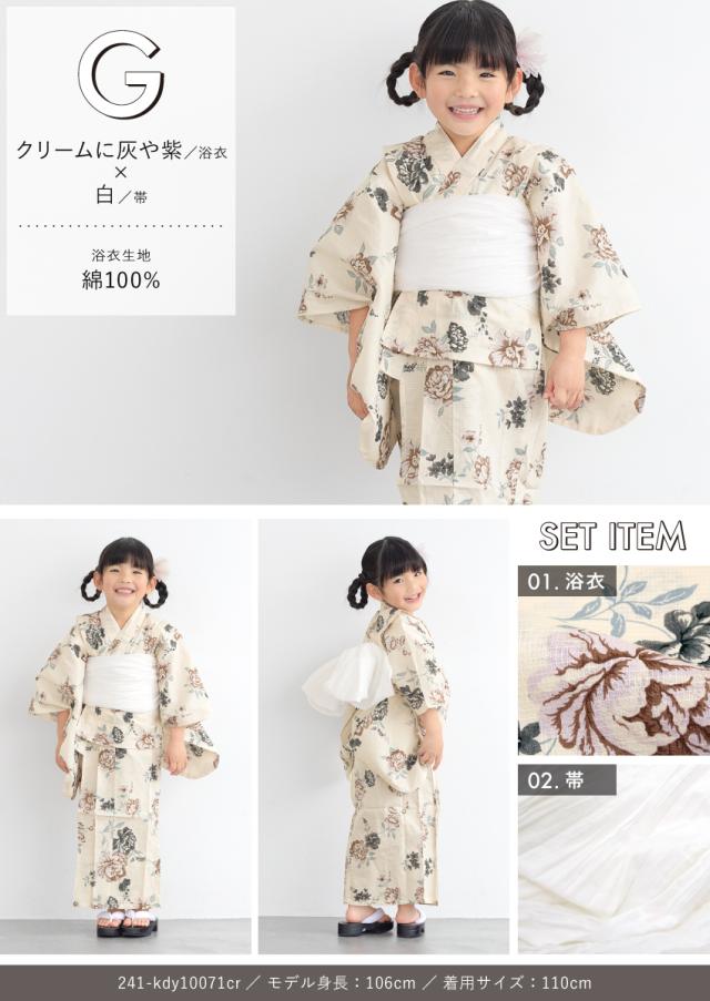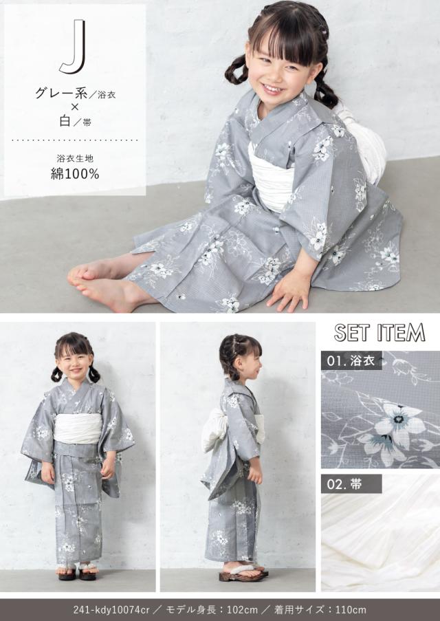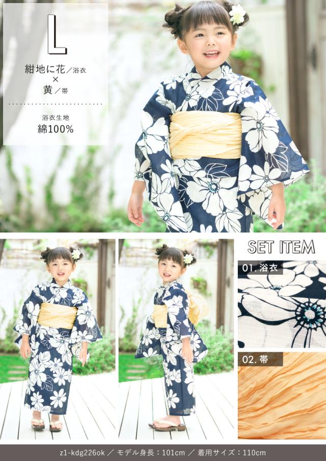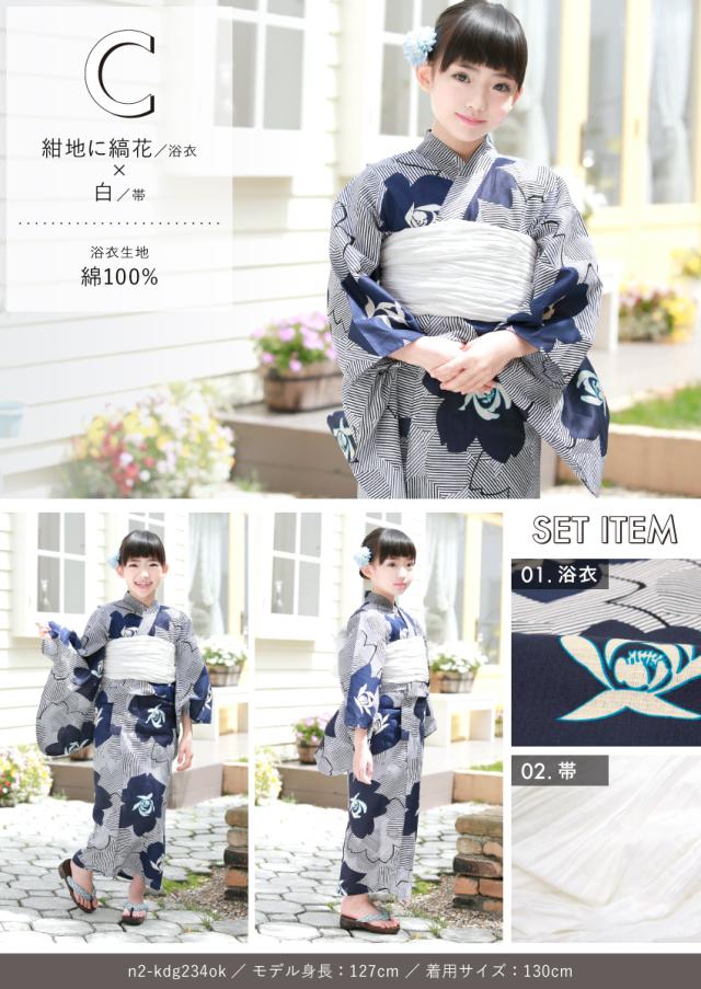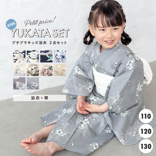 浴衣セット キッズ プチプラ 子供浴衣 2点セット 女の子 浴衣 兵児帯 帯 セット 花柄 ひまわり ストライプ アースカラー 青 白 紺 おしゃれ 着付け 簡単 子供 小学生 ジュニア 夏祭り 花火大会 翌日配送 創美苑 送料無料