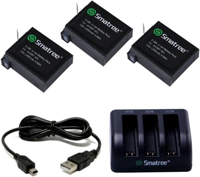 GoPro Hero4用 1290mAh バッテリー3 個 +充電器 GoPro用 バッテリーパック 充電器付き AKM-031