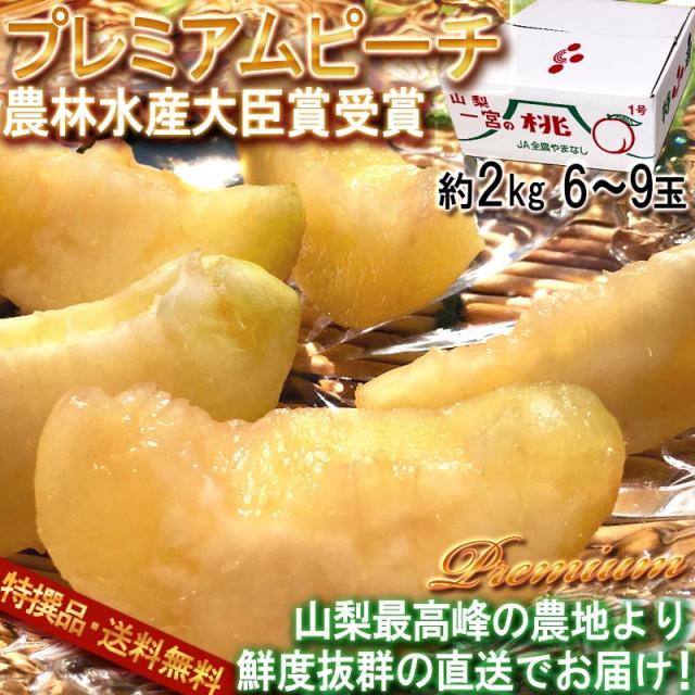 産地直送 プレミアムピーチ 桃 山梨県産 約2kg 6〜9玉 贈答品 最高峰特選規格 有機栽培 農林水産大臣賞受賞農園の最高品質!