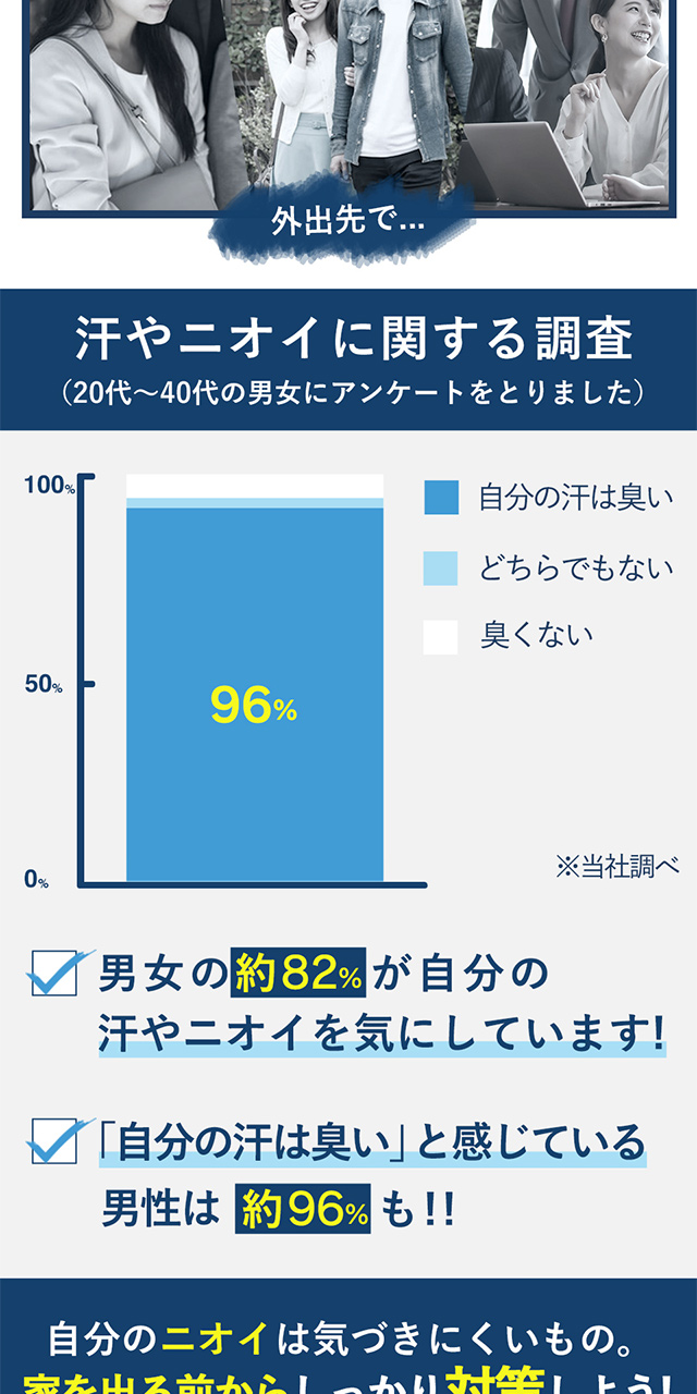 ワキガ対策をしたい、汗のニオイが気になる、足が臭い、加齢臭が気になる、など