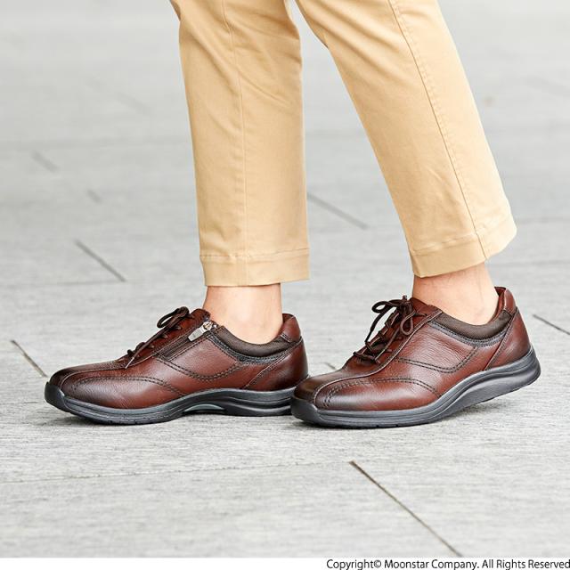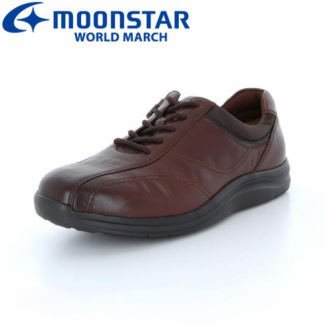送料無料 ムーンスター ワールドマーチ メンズ スニーカー カジュアルウォーキングシューズ 靴 WM3118 ダークブラウン ファスナー 本革 天然皮革 幅広4E 透湿防水 高反発弾性 通勤 散歩 父の日