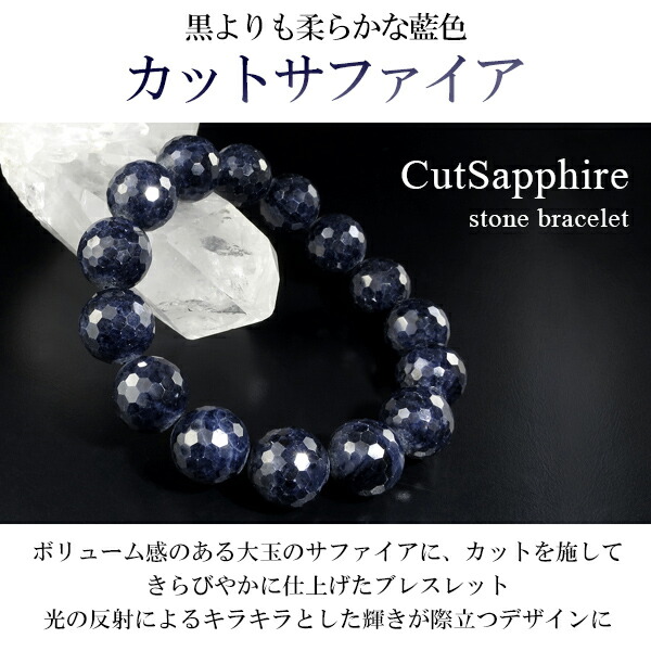 カットサファイア ブレスレット 13.3mm 19cm メンズL、レディースLLサイズ