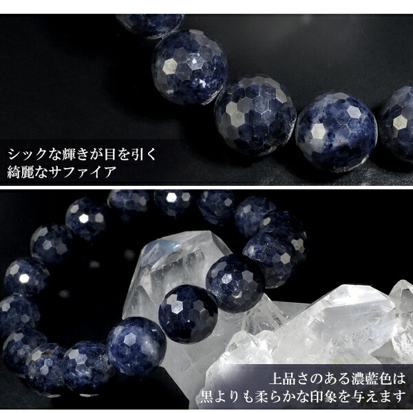 サファイア ブレスレット 12mm 17.5cm〜19.5cm カットサファイア M〜LLサイズ 天然石 パワーストーン 誕生石 9月 サファイヤ 大玉 数珠ブレスレット